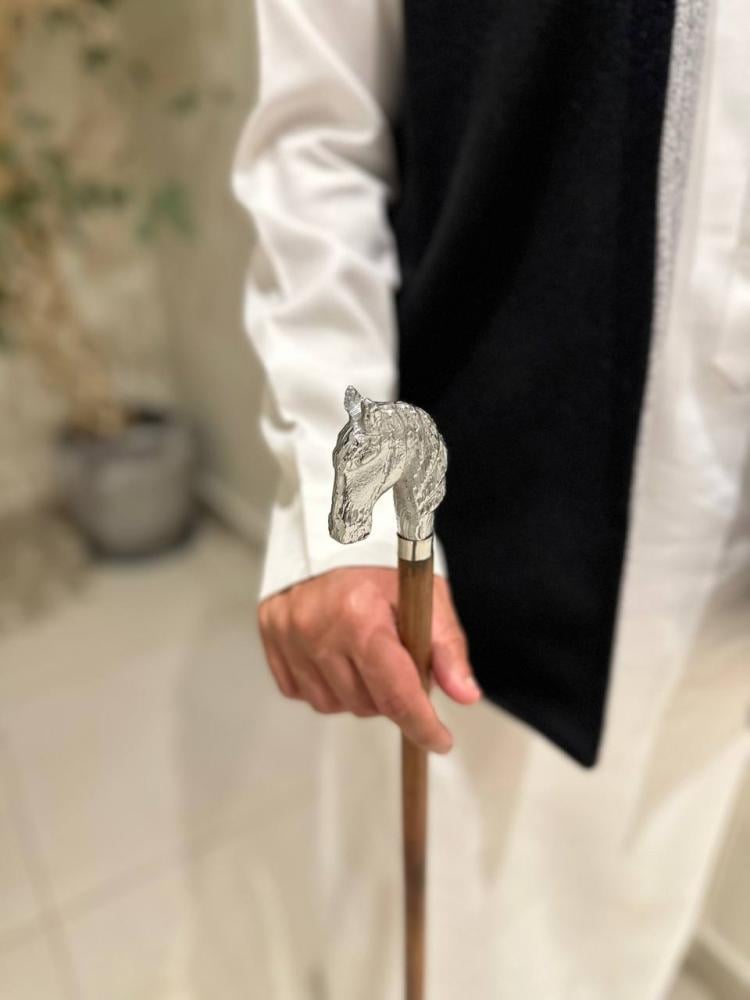 عصا الخيل فضي كبير ورد