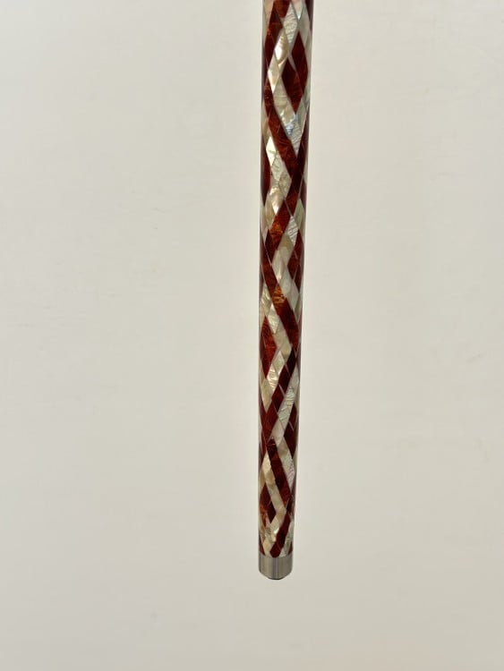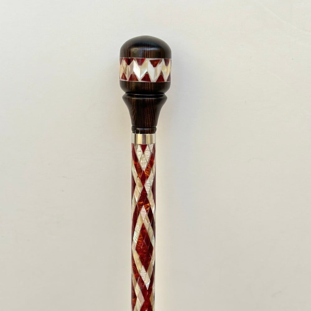 عصا عكاز فاخر مصنوع من خشب الطبيعي ,مزين بالصدف البحري على شكل معينات ,بمقبض ناعمة الملمس ,صناعة يدوية على ايديامهر الحرفيين المختصين في تصنيع عصا العكاز الاخشاب الطبيعية ,وتم صقلها بإحترافية متعددة الاستخدام